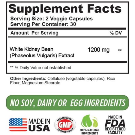 Orignal From: 100% Pure White Kidney Bean Extract - All Natural Carb Blocker 1200mg - Optimized for weight loss and prevention for women and men - Made in the USA - 1 month