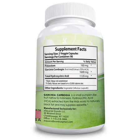 - Pharmaceutical grade Garcinia Cambogia, 1600 mg per serving, containing 1120 mg of pure HCA per serving [2 capsules per serving]*