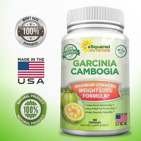 Orignal From: aSquared Nutrition Garcinia Cambogia Extract - 180 Capsules Pills - 100% Pure Natural Weight Loss Dietary Supplement, Ultra High Intensity HCA, Best Max Max Detox Tablet for Men and Women