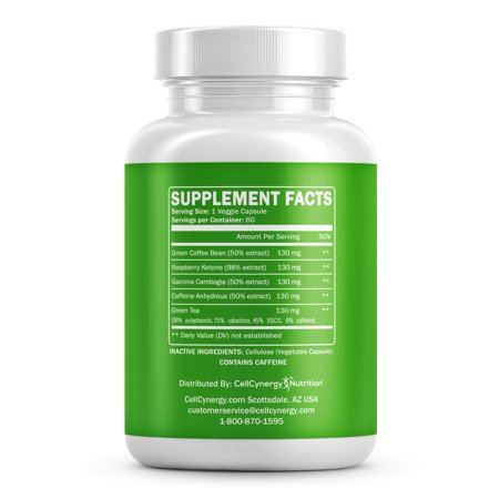 Orignal From: All natural weight loss fat burners for men and women - Garcinia Cambogia, green tea - Fat burning, appetite suppression, metabolism - Green coffee beans - Non-GMO CellCynergy 60 Veggie Caps