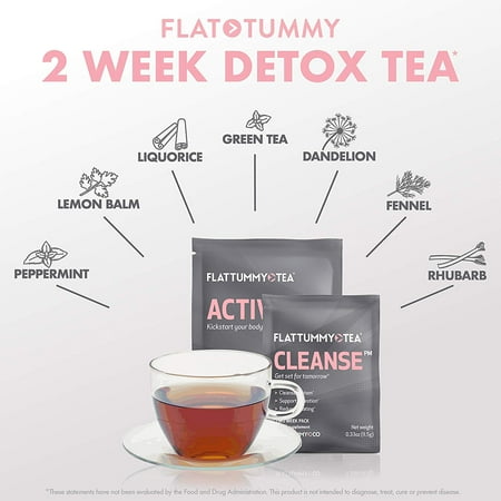 Flat Tummy Tea All Natural Detox Tea - 2-Step Metabolism Promotes Teatox System [2 Week Clean]