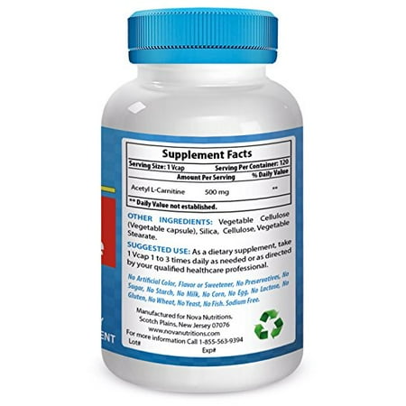Nova Nutritions Acetyl L-Carnitine 500 mg 120 Vcaps