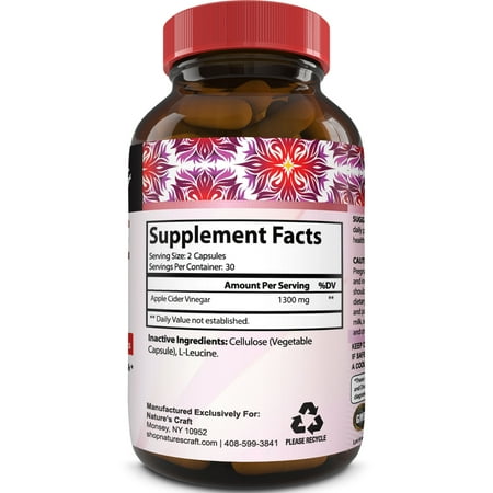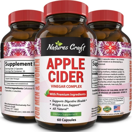 Best Apple Cider Vinegar Pills-We offer Apple Cider Vinegar Supplements to pack everything you need in one capsule. Rich in vitamins and minerals, this is an extra strength weight loss product for men and women. Burn fat naturally! Natural weight loss supplements-pure apple cider vinegar is an effective appetite suppressant and fat burner-it can boost metabolism while helping to reduce sugar cravings. These effective weight loss pills will keep you full for longer and melt belly fat faster. Support Digestion and Health-Detox cleanse and improve digestion with the help of our Cider Vinegar Capsules-This fat burning supplement makes your digestive system work better while supporting healthy blood sugar nutrient-rich foods-us The cider vinegar supplement contains vitamin B6 and other ingredients such as spirulina, kelp and apple pectin. This formula makes our products more effective than other Apple Cider vinegar tablets, chews, liquids or drops. Made in the USA-All supplements sold in Natures Craft are made in the USA. Our products are produced by GMP-certified laboratories and contain only the purest non-GMO ingredients. Shop with confidence!